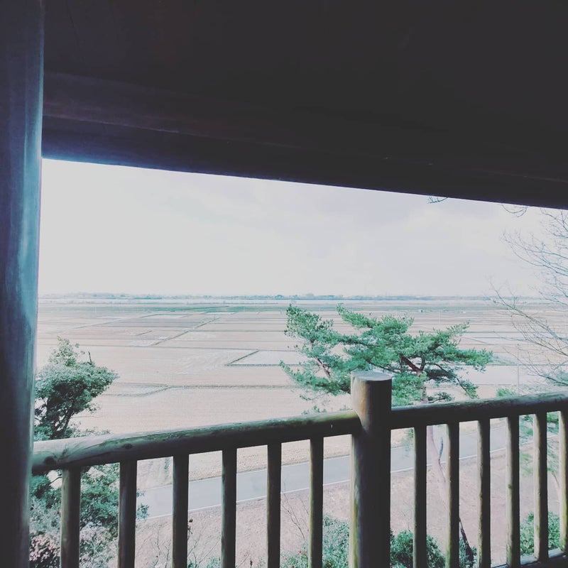 周囲の水田のその先に河川が横たわっているのが、お分かりいただけますか?