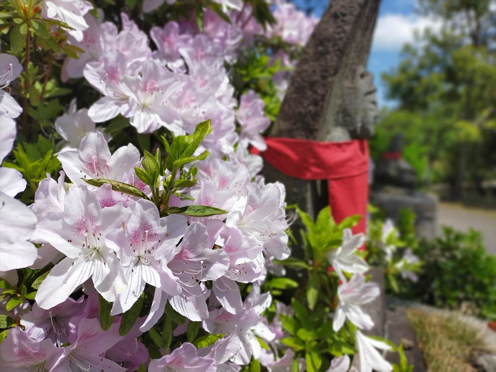 参道を歩くたびに、風に揺れる淡い色合いの花々が目に飛び込んできます!