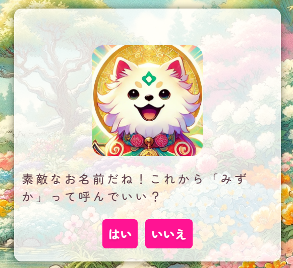 図のようなニックネーム確認画面が表示されますので、今一度ニックネームをご確認のうえ、よろしければ「はい」をタップします。