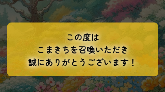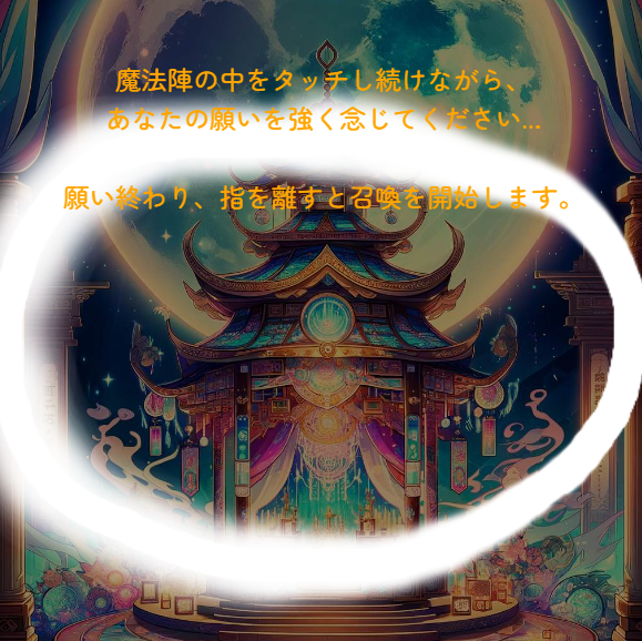 召喚を成功させるためには、「自分と周りの人々を受け入れる気持ち」を持つことが大切です。 画面に表示されるメッセージは、その気持ちになるためのヒントがたくさん詰まっています。 数分間、メッセージを読みながら、ご自身の心と向き合ってみてください。
