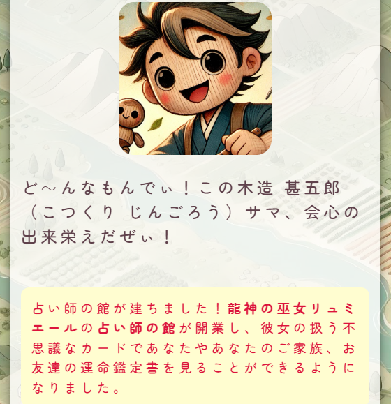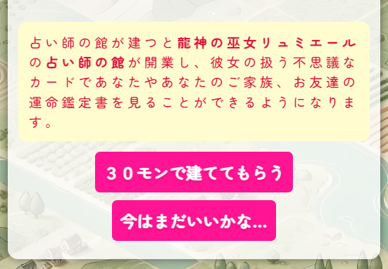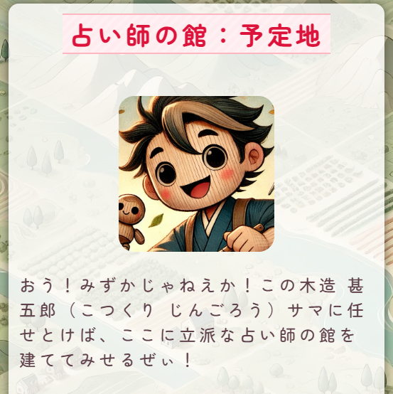 大工の精霊が現れて、ここに「占い師の館」を建ててくれるといいます!