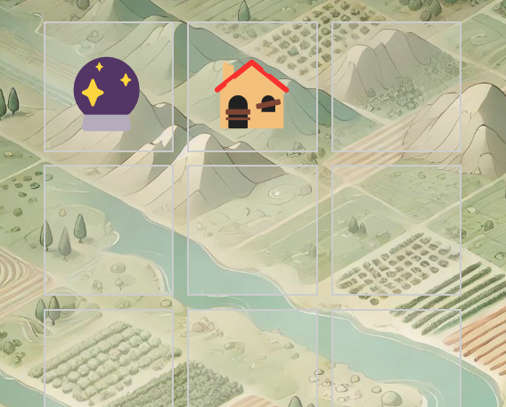 フィールド画面に戻ると、確かに一番左上の廃墟が、占い師の水晶みたいなアイコンに変化しています。