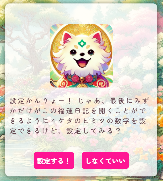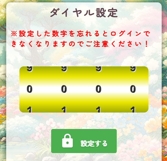 この画面で「はい」を選択すると、4桁のヒミツの数字をダイヤルにセットすることが可能です。