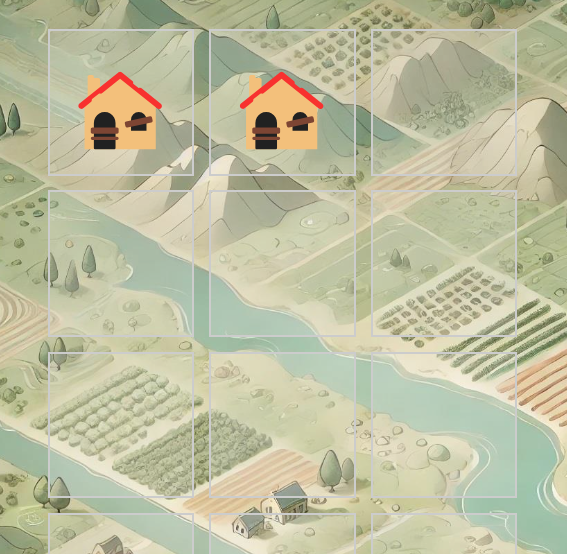 - 町(地点マーク) … 最初は廃墟だらけですが、さまざまな施設(コンテンツ)を建てることができます
